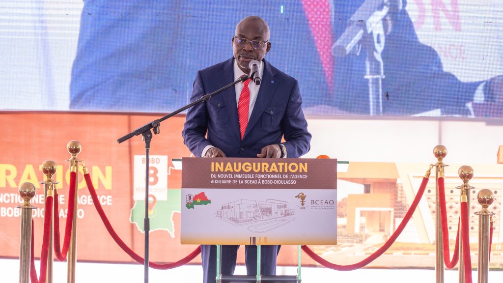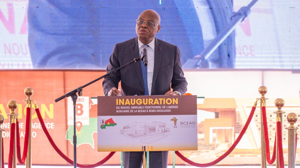 La Banque Centrale des États de l’Afrique de l’Ouest (BCEAO) a inauguré, le samedi 8 février 2025, le nouvel immeuble fonctionnel de son agence auxiliaire de Bobo-Dioulasso. La cérémonie a été présidée par le ministre de l’Économie et des Finances du Burkina Faso, Dr Aboubakar Nacanabo, en présence du ministre ivoirien des Finances et du Budget, Adama Coulibaly, également président du Conseil des ministres de l’UEMOA, ainsi que du gouverneur de la BCEAO, Jean-Claude Kassi Brou. Des acteurs du système bancaire et des systèmes financiers décentralisés du Burkina Faso ont par ailleurs pris part à l’événement.