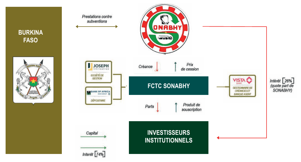 La SONABHY va transformer de l’argent qu’on lui devait dans le futur (les créances) en argent immédiat grâce au FCTC SONABHY et aux investisseurs.