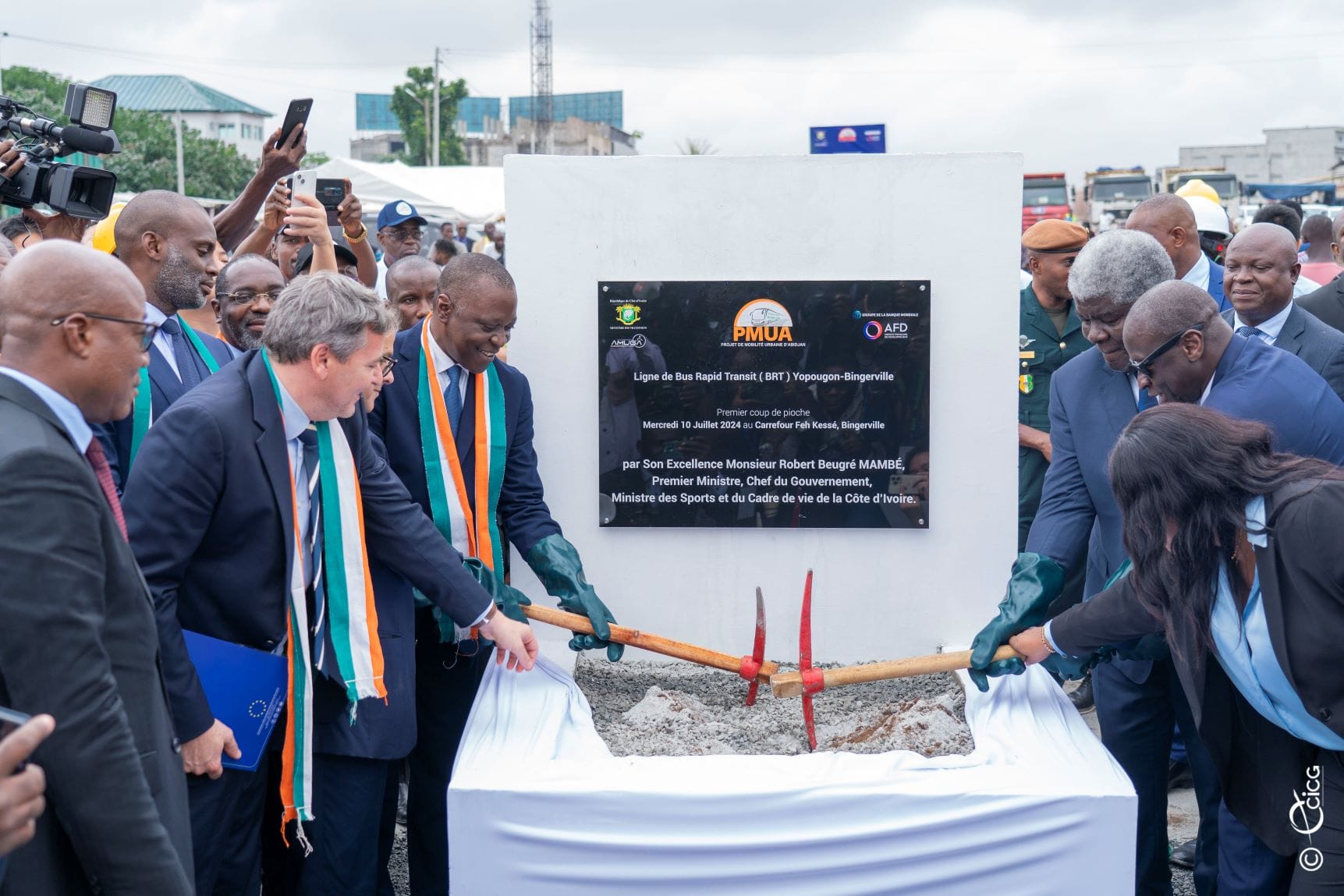 Le Premier ministre Robert Beugré Mambé a inauguré ce mercredi 10 juillet 2024 le chantier de la ligne de Bus Rapid Transit (BRT) reliant Yopougon à Bingerville, un projet d’envergure évalué à 242 milliards de FCFA. Cette initiative, inscrite dans le cadre du Projet de Mobilité Urbaine d’Abidjan (PMUA) et soutenue par la Banque Mondiale et l’Agence Française de Développement (AFD), vise à révolutionner la mobilité urbaine dans la capitale économique ivoirienne.
