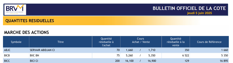 D’après les données du marché en date du 05/06/2025, le cours de l’action LNB est aujourd’hui fixé à 4 800 FCFA, soit exactement le prix d’introduction. Cette stagnation est significative à plusieurs égards :